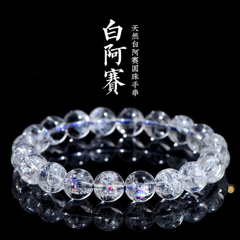 Jiuya Crystal Natural White Asbestos Colorful White Assay Crystal Round Bead Bracelet Rainbow Crystal Bracelet