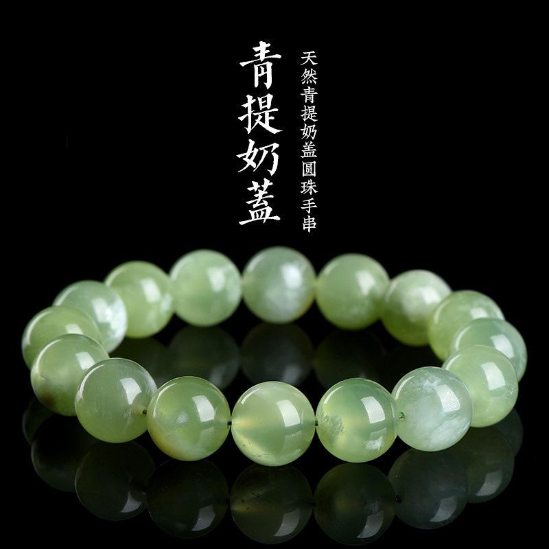 Jiuya Crystal Natural Xiuyan Jade Round Bead Bracelet Green Grape Milk Cover Color Xiu Jade Loose Bead Bracelet Factory direct sales